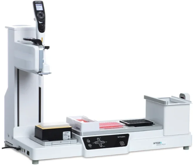 3. qPCR master mix addition to assay panels via automated liquid handlers.