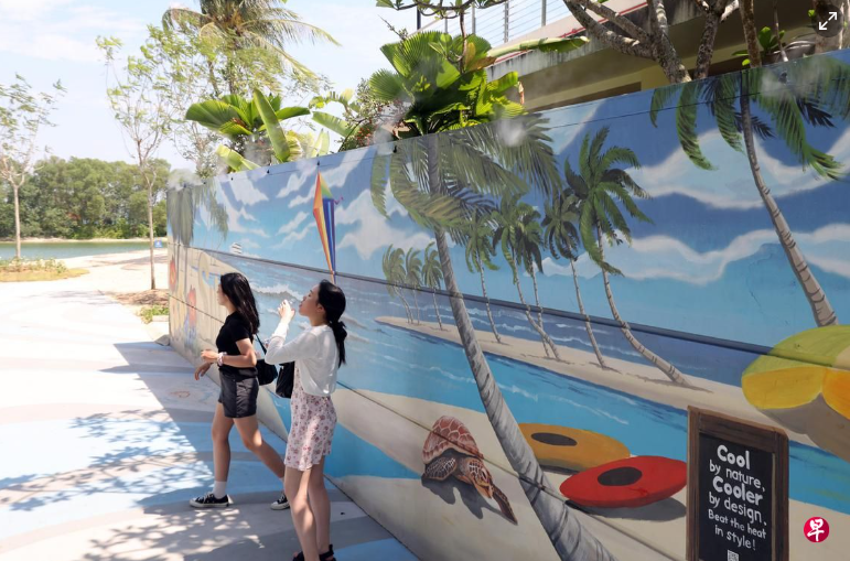 Local attractions such as Sentosa are taking steps to improve visitors’ experience on hot days, including piloting thermal insulation coatings and cooling spray systems. The Sentosa Development Authority plans to publish the results of the outdoor “thermal comfort” study by October at the latest, which will provide guidance on long-term measures for islands to cope with global warming.