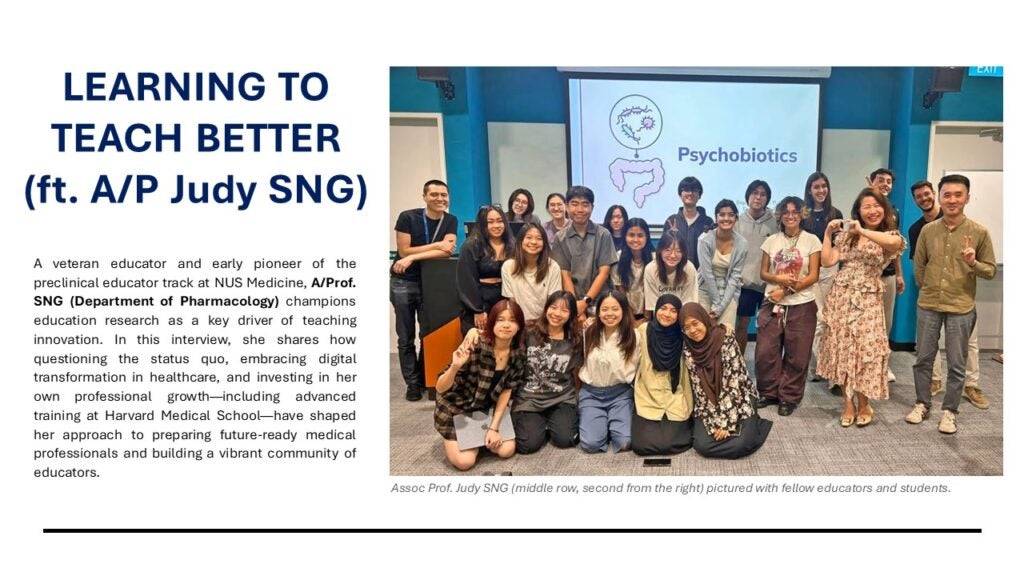 A/Prof Judy Sng added that the collaboration complements ongoing efforts to enhance applied learning across the Master of Medical Pharmacology: “Embedding case studies, industry projects, and internship pathways helps our students see how pharmacology translates into real-world impact. It equips them with the confidence and competence needed to take on regulatory and product safety roles in Singapore and beyond.”