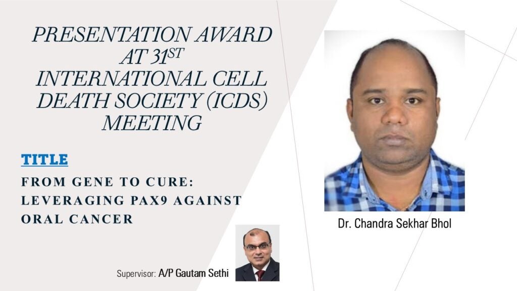 News & Events Jun 3 2025 NUS Pharmacology Faculty Recognized as World Best Scientists by Research.com Read more Jun 2 2025 Special Presentation Award in the International Cell Death Society (ICDS) Meeting: Dr. Chandra Sekhar Bhol Read more Jun 1 2025 📣 Final Call: Local MSc Applications Close 20 June Read more May 27 2025 NUS Department of Pharmacology hosted a delegation from Guangdong Pharmaceutical University led by President Zhai Read more May 19 2025 Strengthening Global Ties: NUS Yong Loo Lin School of Medicine’s Pharmacology Welcomes Delegation from Shanghai University Read more May 13 2025 Embracing Lifelong Learning in Medical Education Read more May 6 2025 Autophagy, Apoptosis and Ferroptosis in Oncology – Book Co-Edited by Dr Alan Prem Kumar Read more Apr 25 2025 Right patient, right dose, right time Read more Apr 9 2025 Introducing Our MSc in Medical Pharmacology: Powering the Future of Medicine! Read more Apr 4 2025 Study confirms accuracy of blood test for early Alzheimer’s detection in Asian populations Read more Apr 4 2025 Unlock Your Future in Medicine with Our Special Early Bird Offer! Read more Mar 27 2025 Unlock Your Future in Medicine with Our Special Early Bird Offer! Read more « Previous 1 2 3 4 5 … 16 Next »