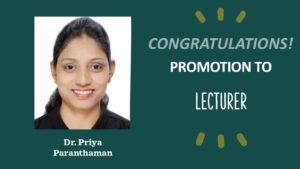 Promotion to Lecturer: Dr. Priya Paranthaman