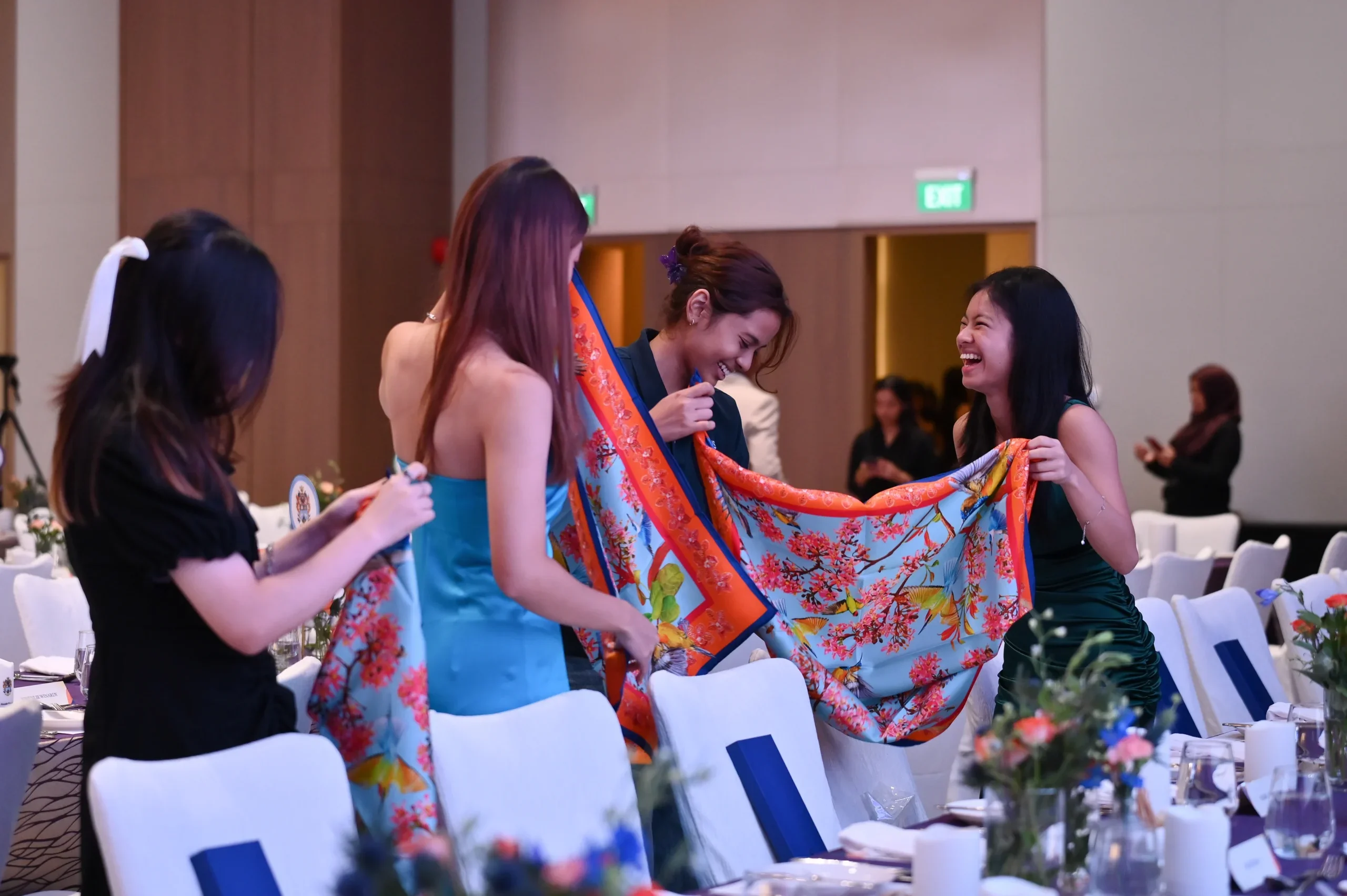Our women students don their NUS Medicine scarves, each woven in the signature colours and patterns created specially for the Class of 2030.