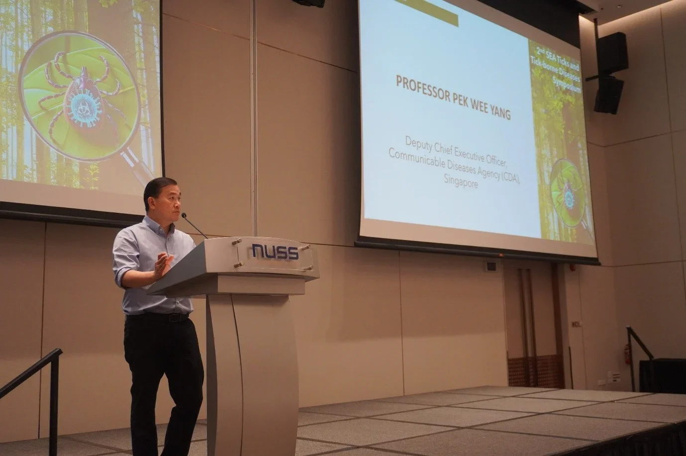 The Department of Microbiology and Immunology at the Yong Loo Lin School of Medicine, National University of Singapore (NUS Medicine) hosted the second Southeast Asia Ticks and Tick-borne Diseases Symposium, on 28 to 29 August 2025, with approximately 100 guests in attendance. Building on the momentum of the regional initiative launched in 2023 by Institut Pasteur du Cambodge, the event aimed to review progress, foster collaboration, and strengthen the regional network dedicated to advancing research and control strategies for ticks and tick-borne diseases. The 2025 edition of the symposium was organised by NUS Medicine, in collaboration with the Duke-NUS Medical School, NUS Saw Swee Hock School Of Public Health, Communicable Diseases Agency, Mandai Wildlife Reserve, Environmental Health Institute, and the A*STAR Infectious Diseases Labs.