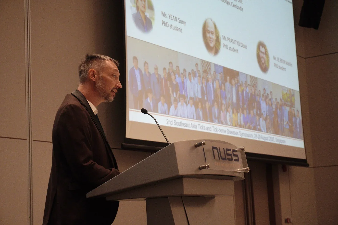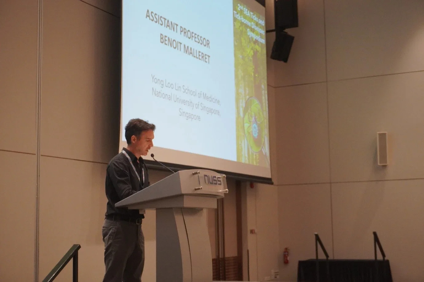 Lecture by Dr Jean-Marc Chavatte, co-organiser of the conference, from Communicable Diseases Agency, Singapore, on ticks and tick-borne diseases in Singapore.