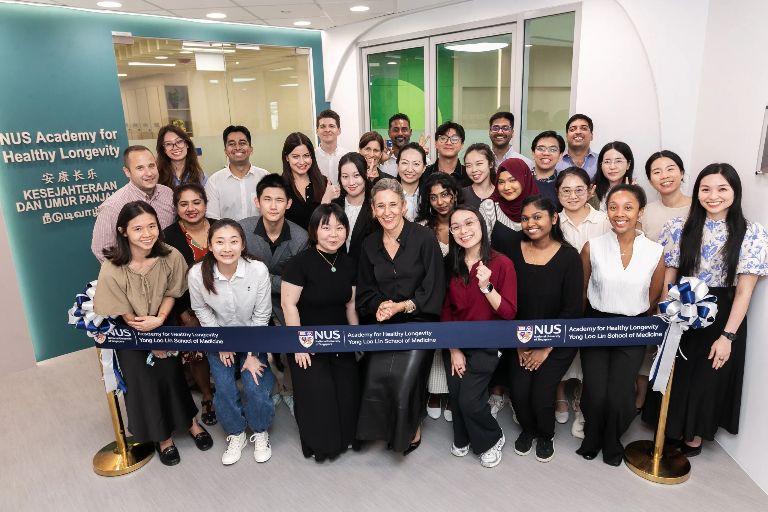 Group photo for NUS Medicine’s Academy for Healthy Longevity team, at their opening! Fourth from the left in the front row is Prof Andrea Maier, Director of the Academy.