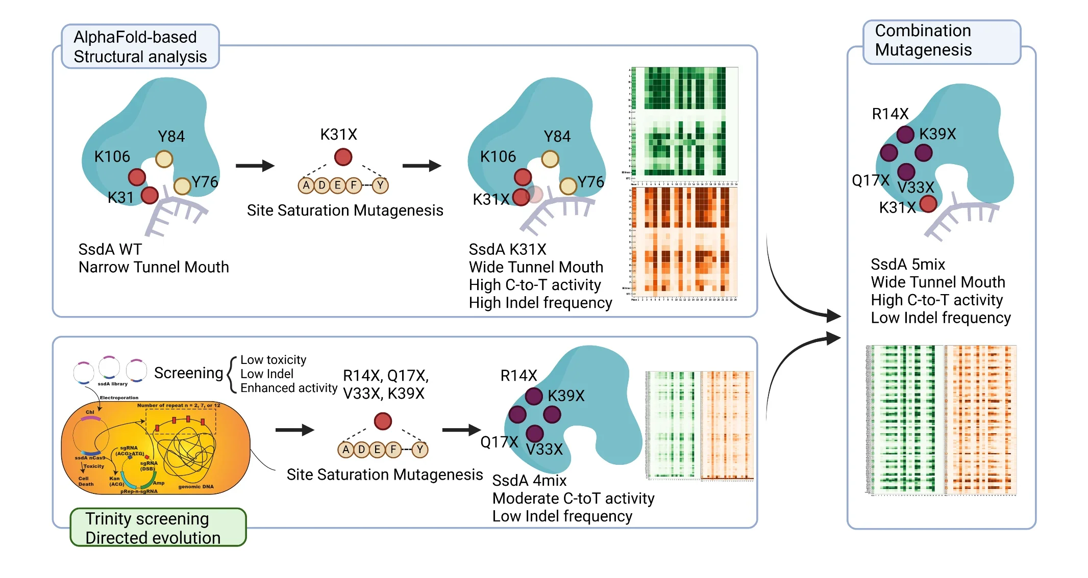 Second, they developed a new screening platform called Trinity-Screen. This system tests three things at the same time inside bacterial cells: does the enzyme edit DNA efficiently; does it avoid causing harmful DNA breaks; and is it non-toxic to cells?