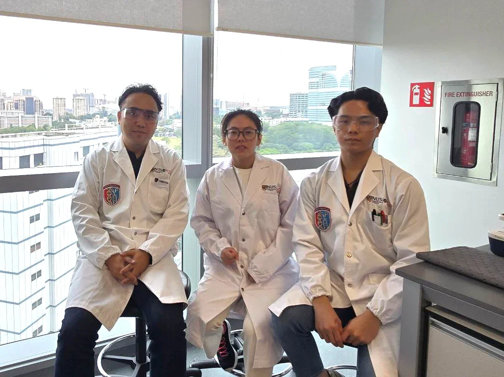 From left to right: Assistant Professor Jungjoon K. Lee, Department of Biochemistry, Synthetic Biology for Clinical and Technological Innovation (SynCTI), Synthetic Biology Translational Research Programme (TRP), NUS Medicine; Dr Gao Ni, Research Fellow, Department of Biochemistry, NUS Medicine; and Mr Matthias Lim Boon Han, Student, NUS Medicine