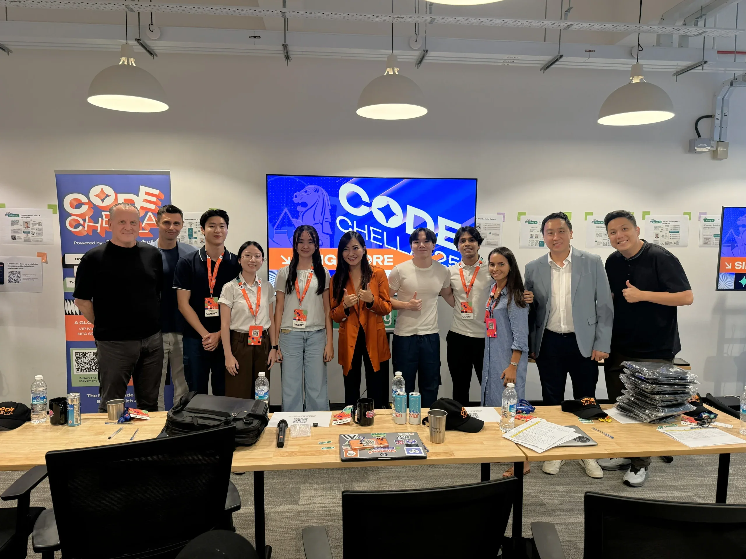 Group photo of the Top 10 teams, judges, and ChatAndBuild team at the Final Round of Codechella Tour Singapore.