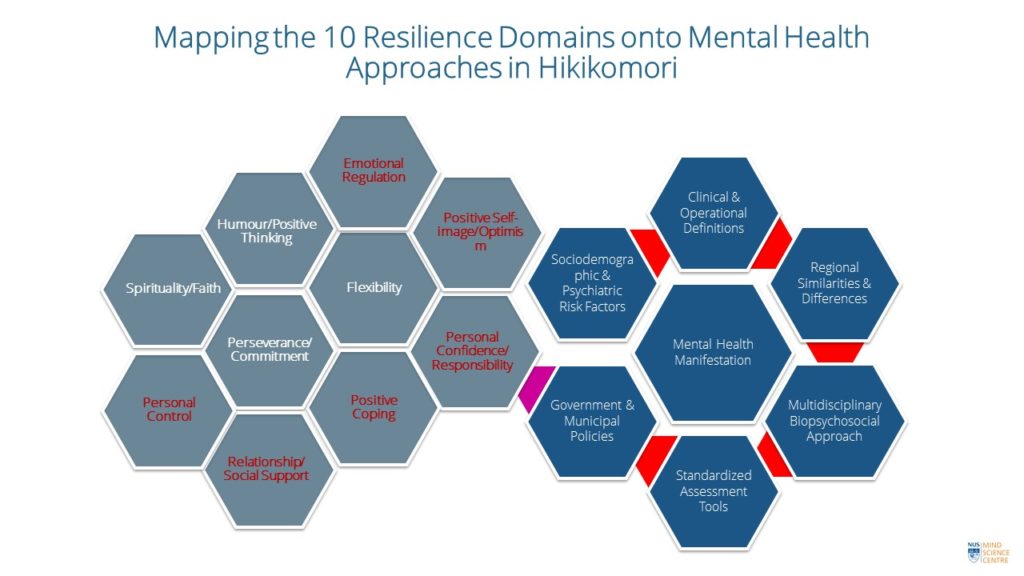 To stimulate minds further, A/Prof John Wong gave our guests a brief introduction into the Singapore Youth Resilience Scale (SYRESS), a scale that measures the resilience of youth in the Asian context in relation to 10 domains. He showed how the scale could correlate with critical concepts drawn from the Hikikomori Phenomenon, and the potential mental health approaches that could aid in reinforcing the mental resilience in youth.