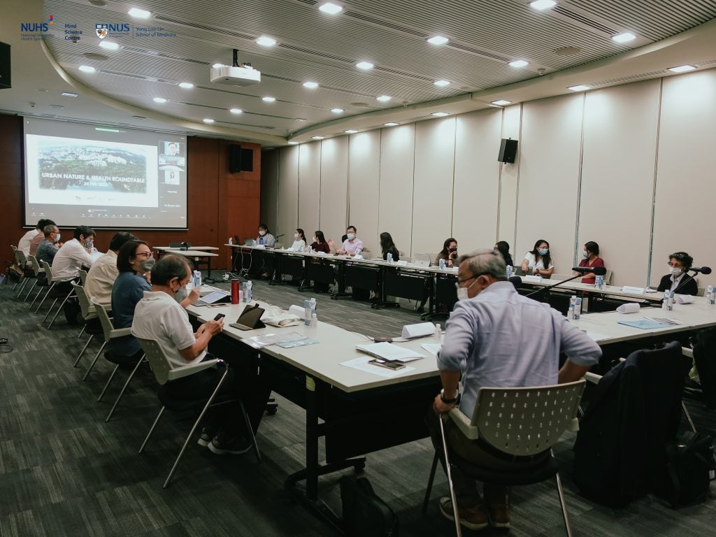 Moving forward with the collaboration, NParks and MSC organized a Round Table Discussion at the Function Hall of Botany Centre on the morning of 24 February 2022. The academic event saw 20 experts from various fields of studies related to mental health and urban nature coming together to share their current research areas and potential research questions.