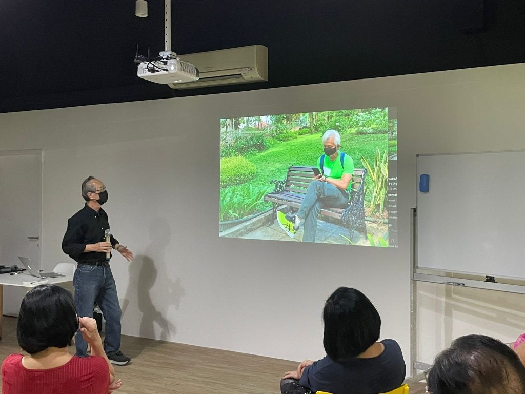 15 Age Well Everyday (AWE) Volunteers gathered at Mind Art Experiential Lab (MAELab) on the morning of 17 September to pick up some tricks to capture professional-looking photos with their smartphones. During the 4-hours workshop, the volunteers learned the basics of photography, followed by some hand-on practice to take scenic photos at the butterfly garden, next to MAELab.