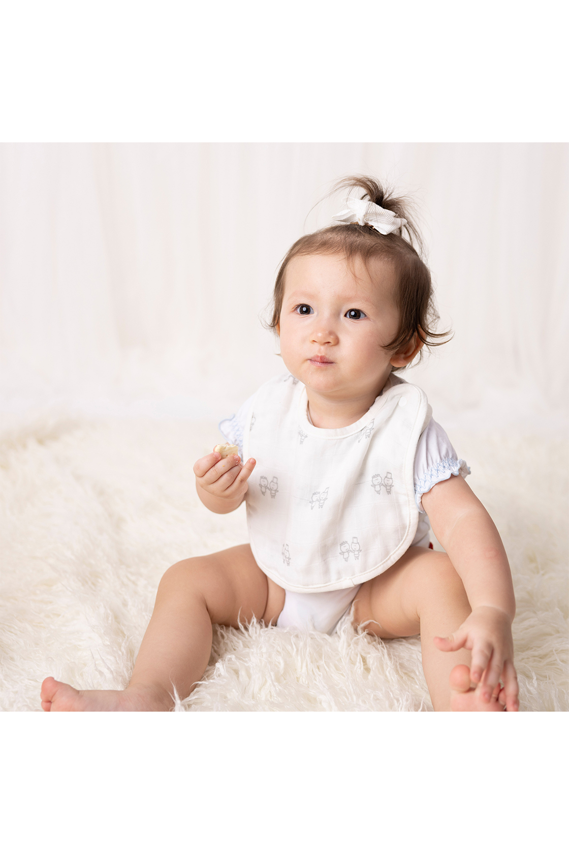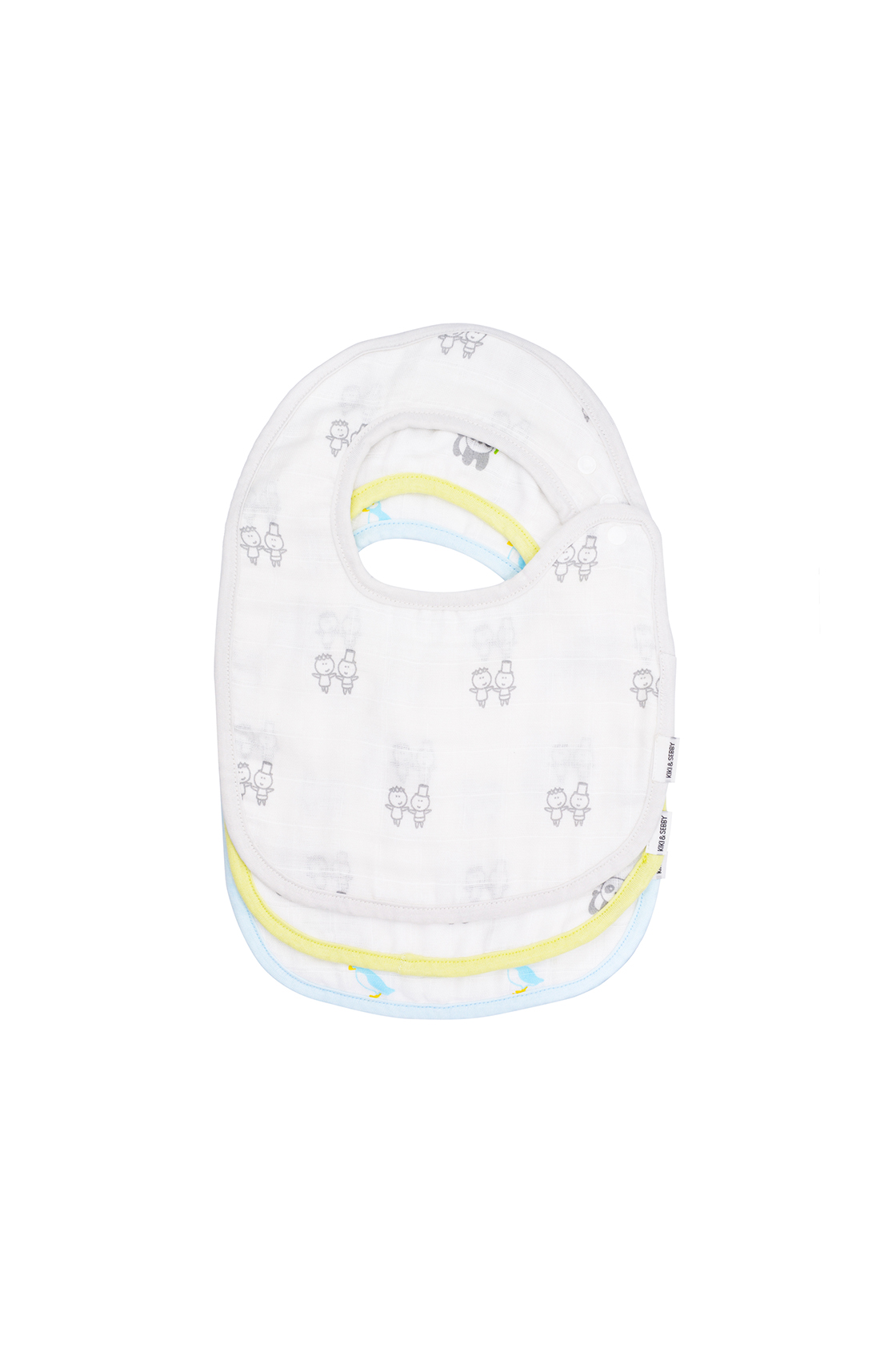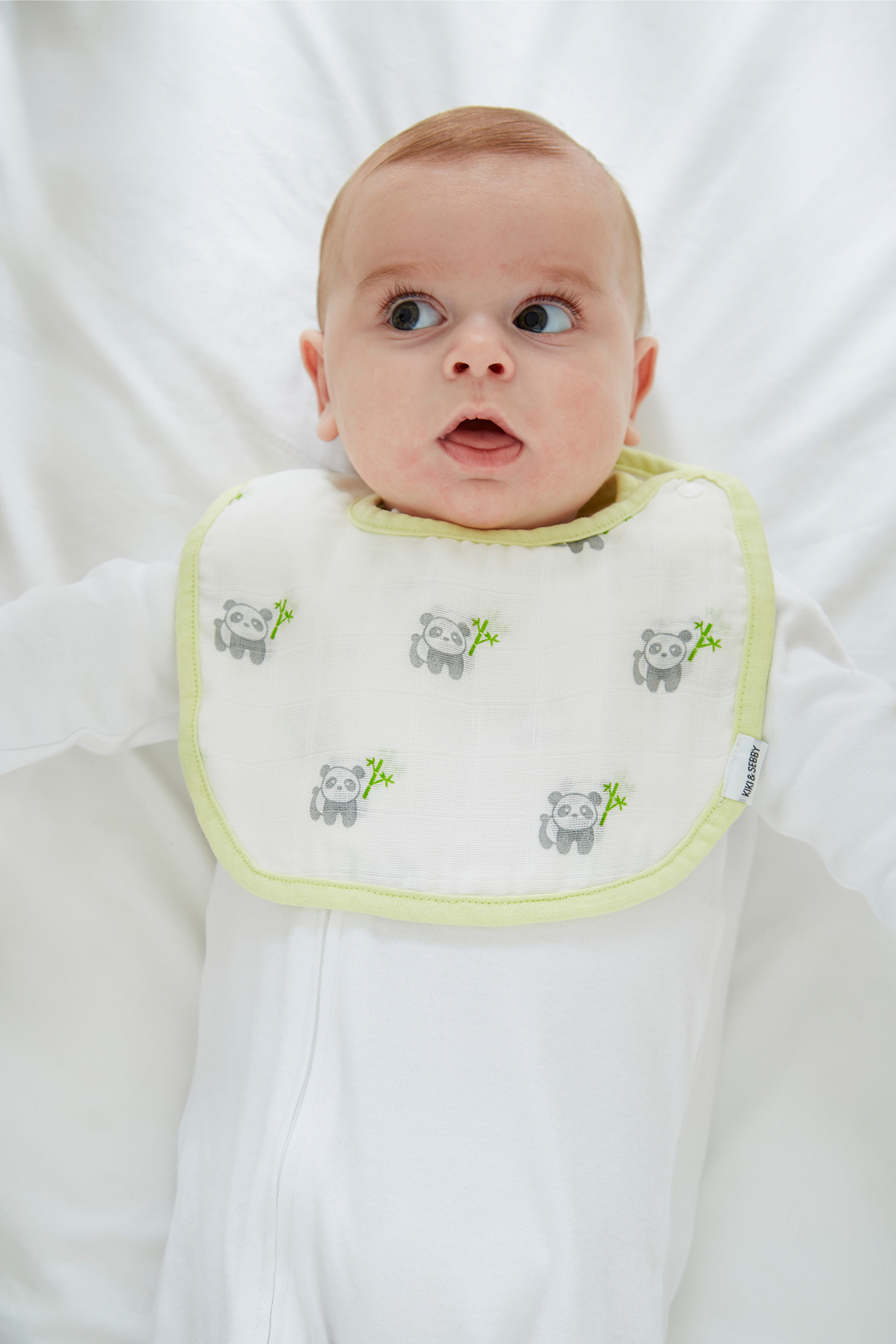 Our bibs feature a snap style design with an adjustable closure to provide a perfect fit for babies of all sizes. The generous size and multiple layers of muslin also offer maximum coverage and absorbency to keep your baby clean and comfortable.