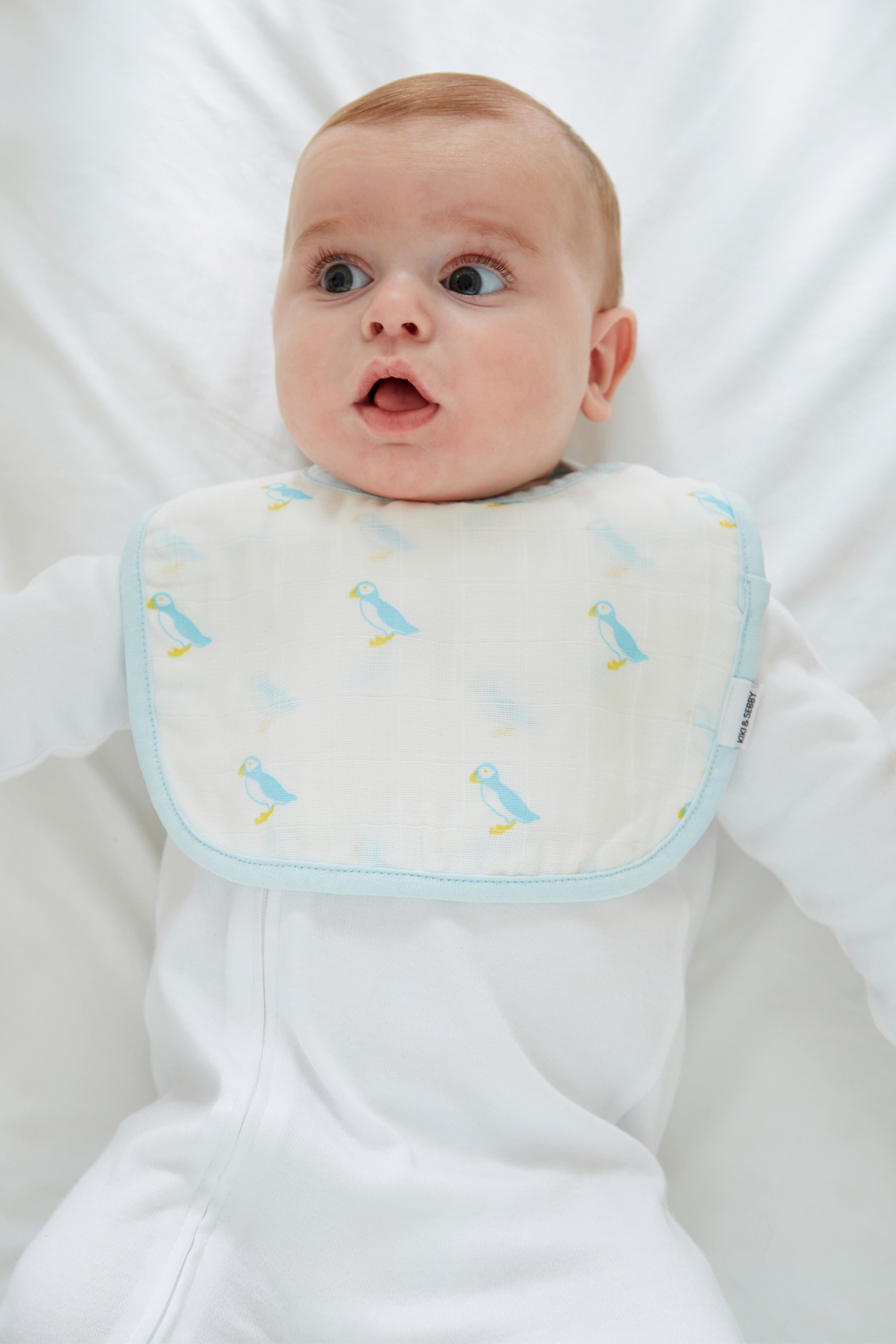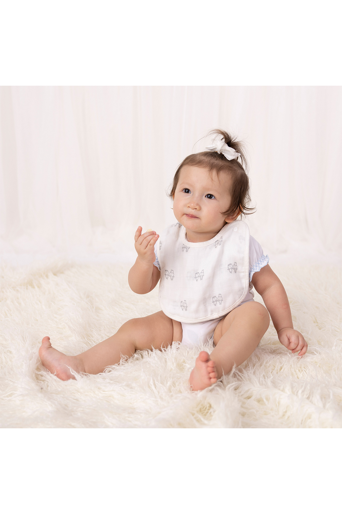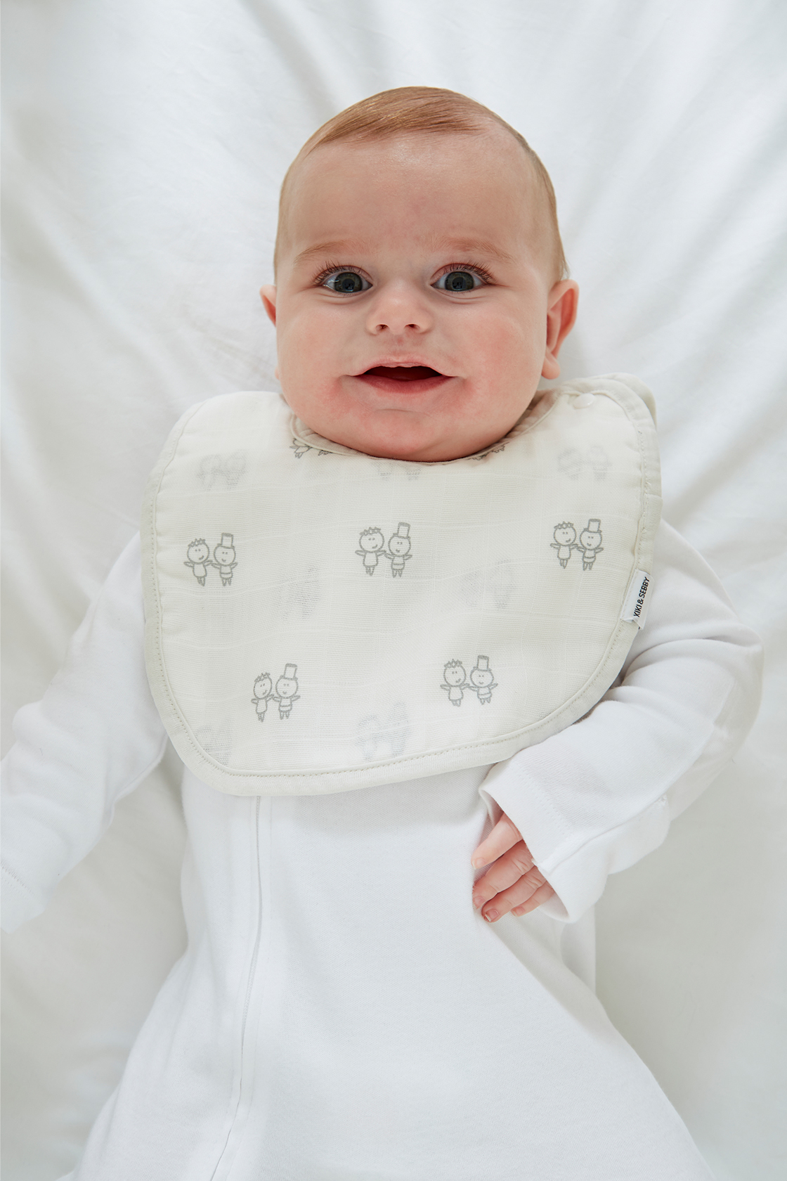 Our bibs feature a snap style design with an adjustable closure to provide a perfect fit for babies of all sizes. The generous size and multiple layers of muslin also offer maximum coverage and absorbency to keep your baby clean and comfortable.