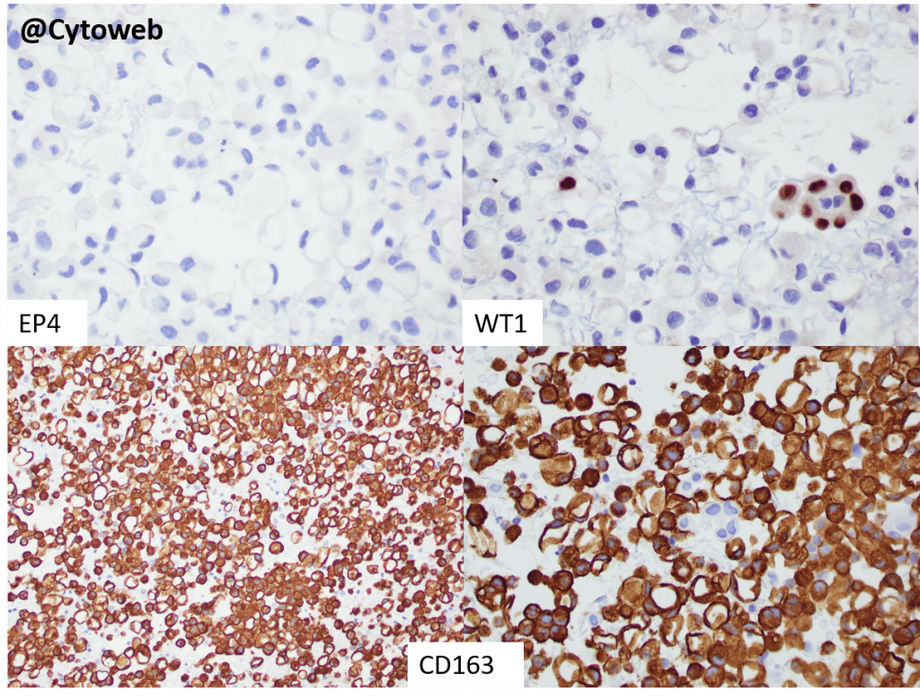 Clinical history: A 72-year-old man with shortness of breath is found to have a pleural effusion. Lung imaging shows consolidation in the ipsilateral lung. A pleural fluid cytology sample is taken, and a cell block processed.