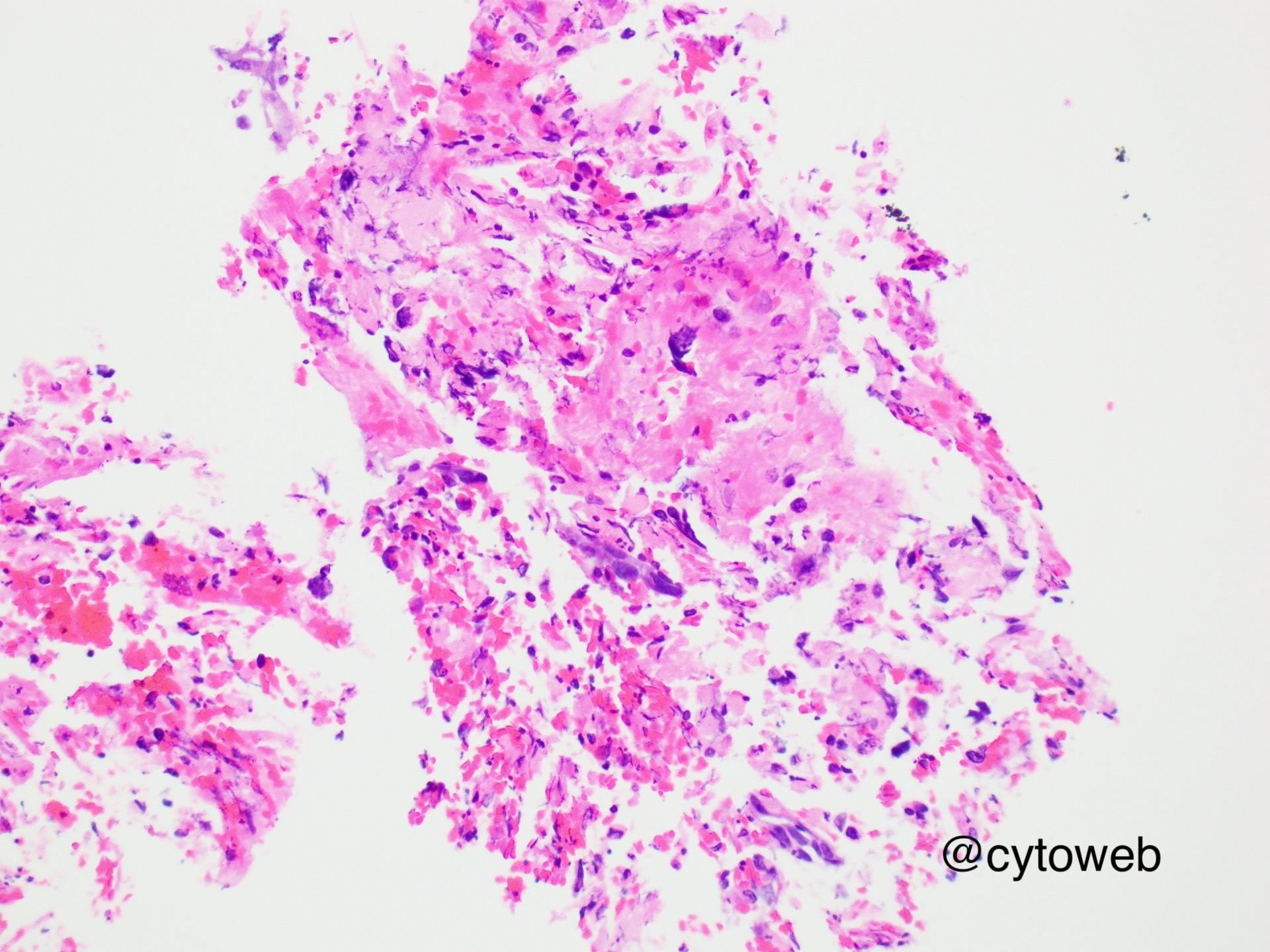 Clinical history: A 65-year-old man presented with an enlarging lump at his left jaw. FNA of the lump is performed.