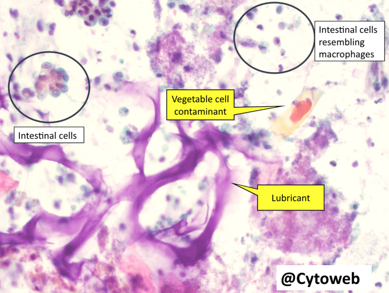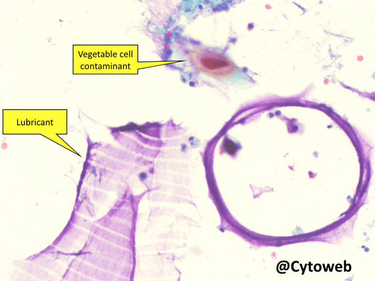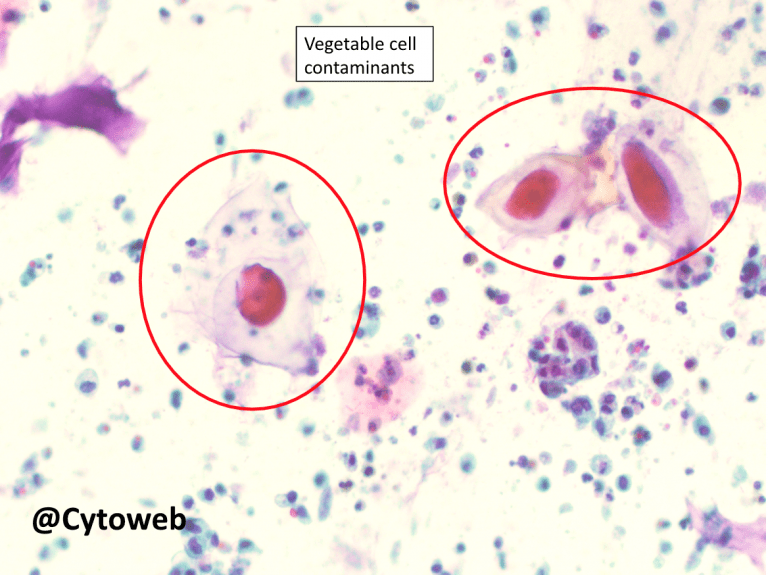 Clinical history: Ileal conduit urine specimen from a 64-year old female with a history of invasive urothelial carcinoma, post cystectomy and urinary diversion procedure. What is the diagnosis? What is the structure circled in red?