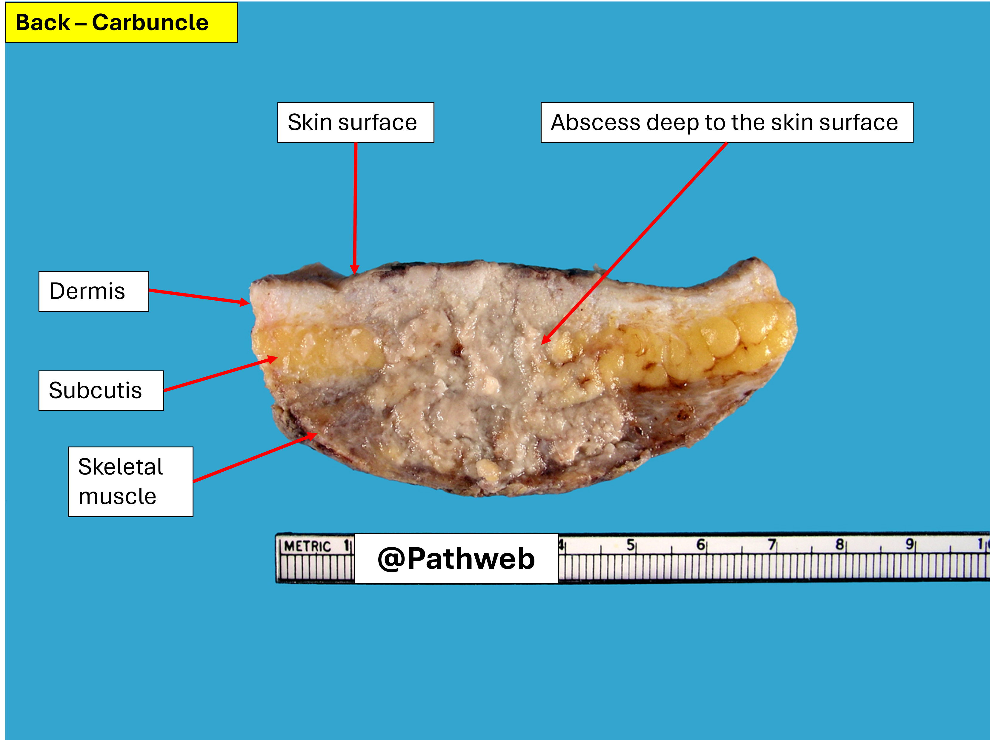 68 year old man with diabetes mellitus was admitted for saucerization of a large chronic "abscess" on his upper back.