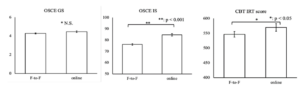 - The online group had higher interview elementary OSCE scores than the face-to-face group.