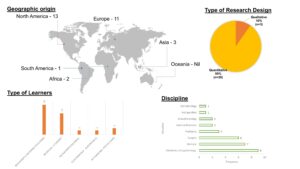 Figure 2. Summary of geographical origin, type of research, type of learners and disciplines studied